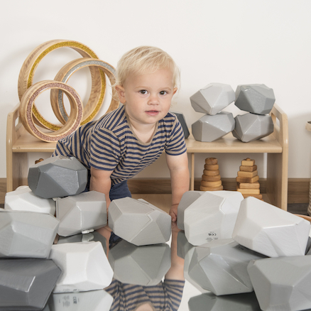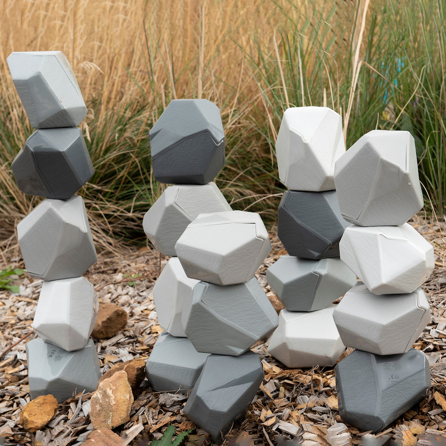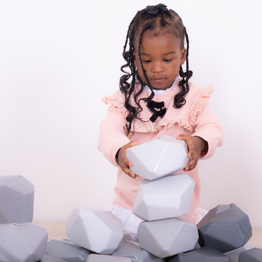 Pagaminta iš bioplastiko, rinkinį sudaro 20 pilkų atspalvių akmenų, kurių matmenys: aukštis 10 cm, plotis 13 cm, gylis 11,5 cm. Tinka skaičiuoti, krauti, dėlioti ir pan. Netinka mokymosi veiklai vandenyje.