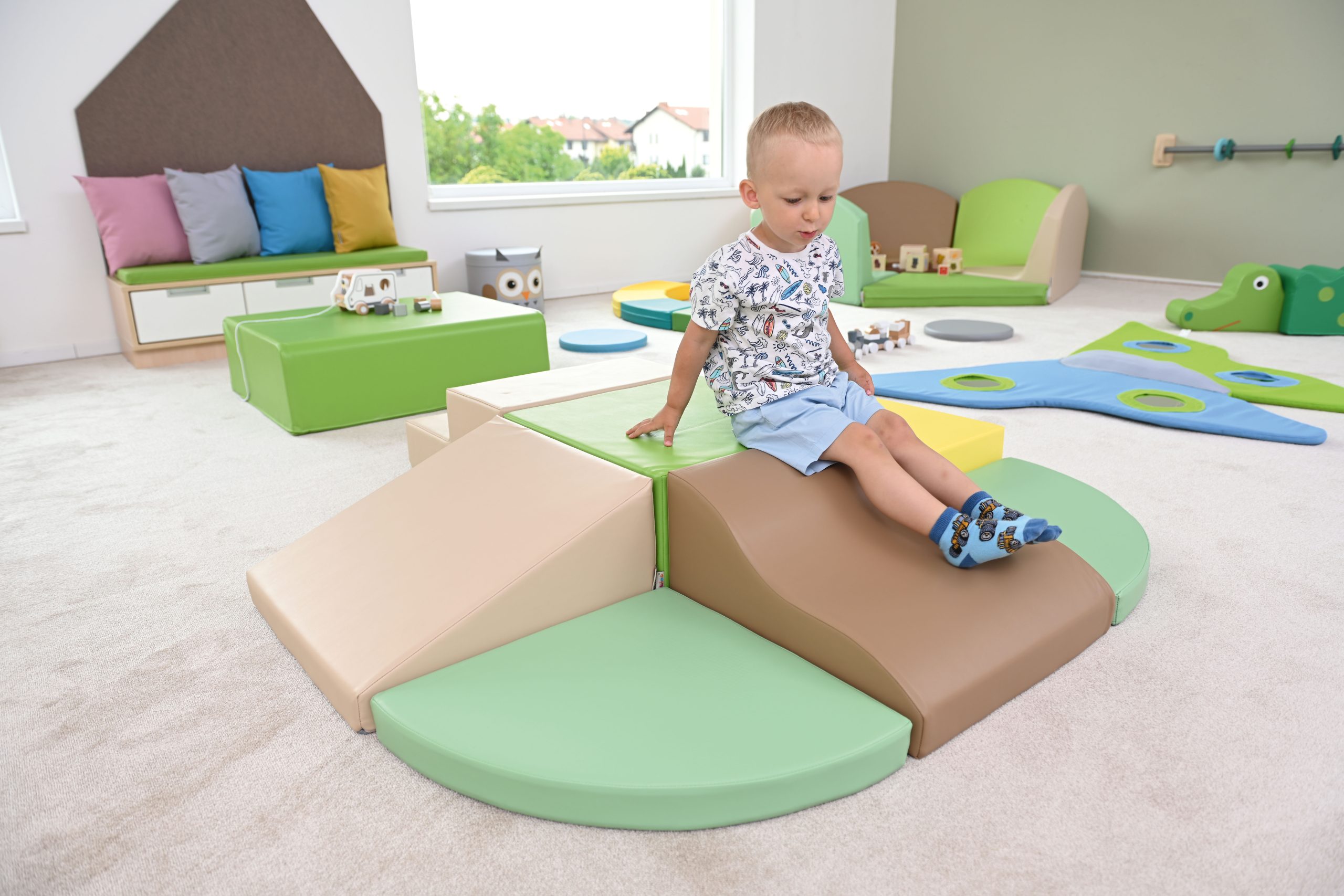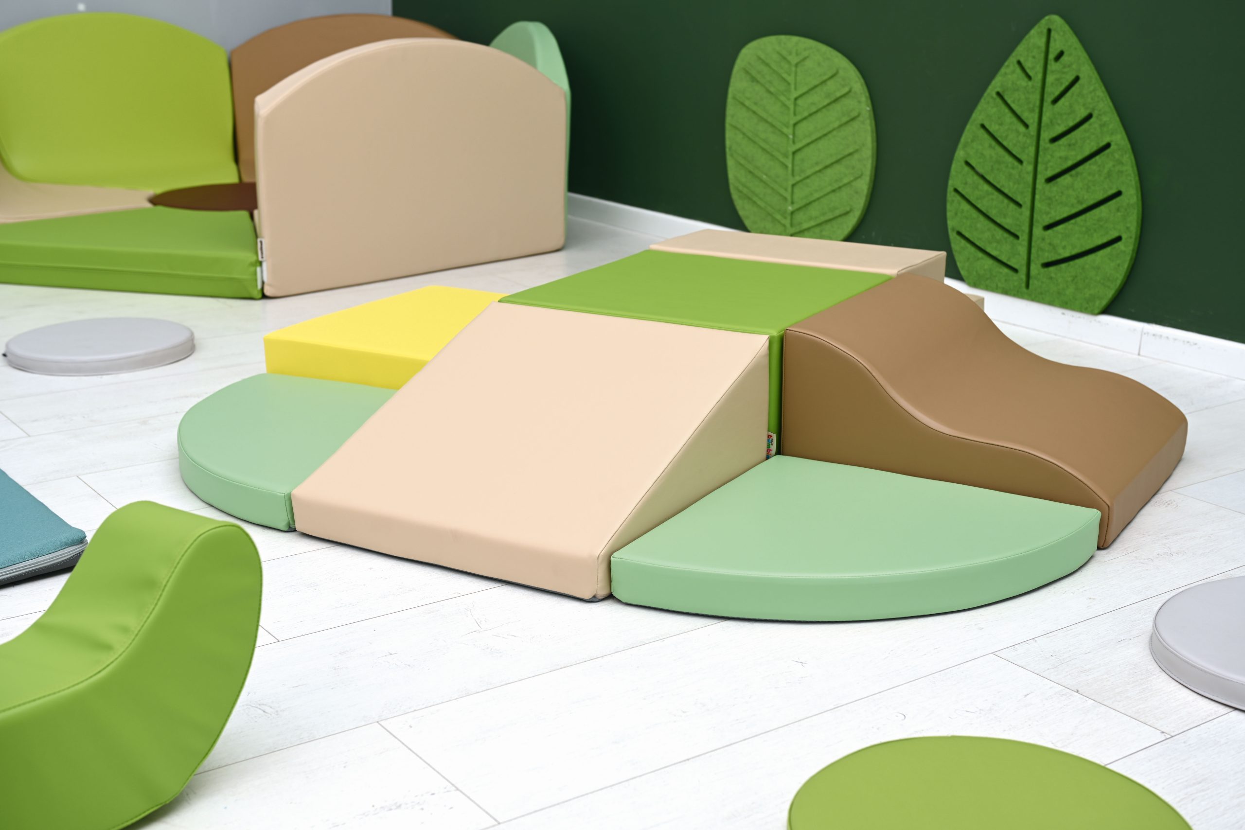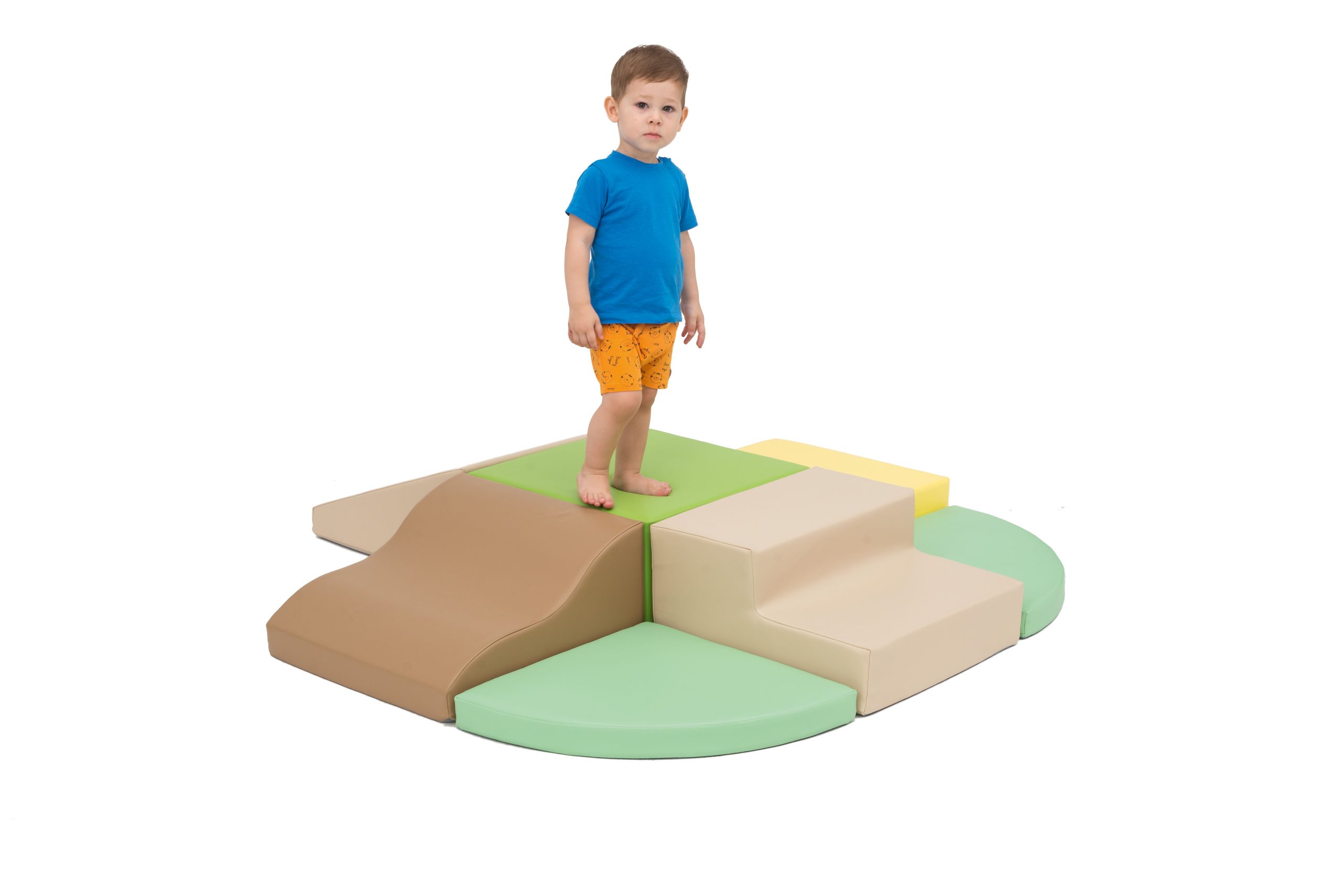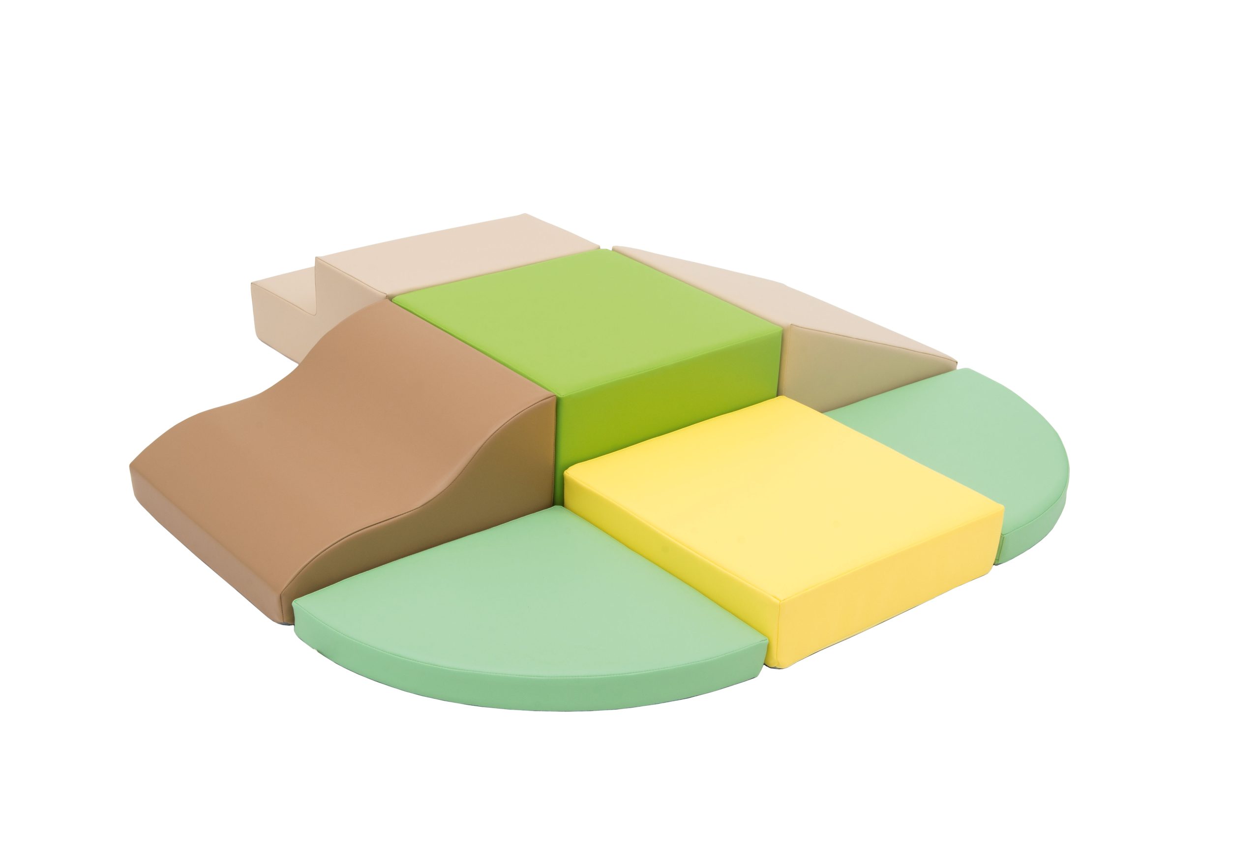 Septynių dalių putplasčio rinkinys, kurį galima naudoti kartu arba atskirai. Dalys būna įvairių formų ir dydžių, todėl jas galima naudoti įvairioje veikloje ir žaidimams. Užvalkalas pagamintas iš lengvai valomos „Meditap“ medžiagos.