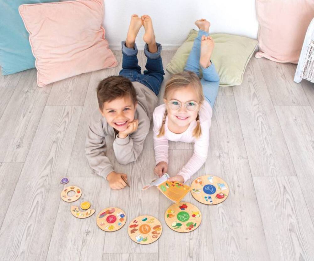 Beleduc dėlionė Humanico „Mityba“ – tai lavinamoji medinė dėlionė, supažindinanti vaikus su sveikos mitybos principais ir maisto piramide. Žaisdami vaikai rūšiuoja maisto produktus į kategorijas, mokosi atskirti, kurie produktai svarbiausi kasdienei mitybai, ir lavina loginį mąstymą bei pažintinius įgūdžius.