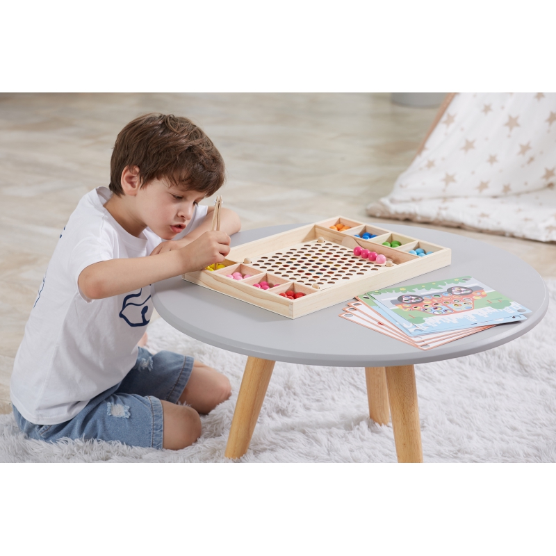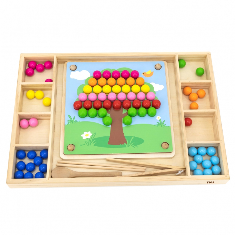 – Žaidimą sudaro 8 rūšių spalvingi karoliukai, pora lazdelių, šaukštas ir segtukas,