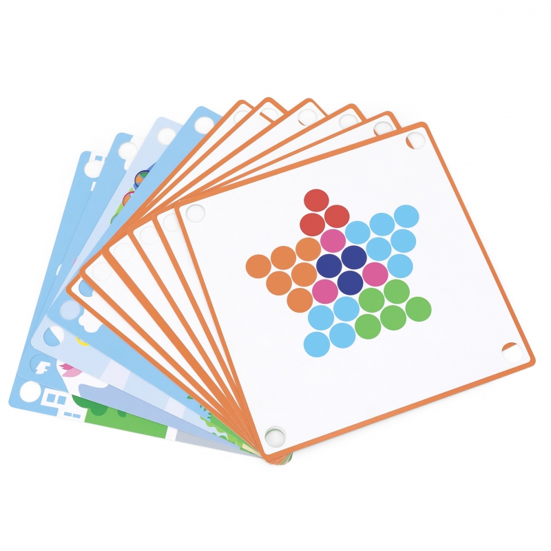 – Šį žaidimą sudaro 10 popieriaus lapelių su skirtingais spalvingais raštais,