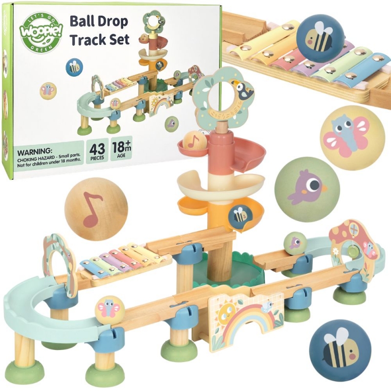 – Muzikiniai elementai – įmontuotas mini instrumentas (cimbolai) leidžia jūsų vaikui girdėti garsus riedant kamuoliukams, praturtindamas žaidimo patirtį