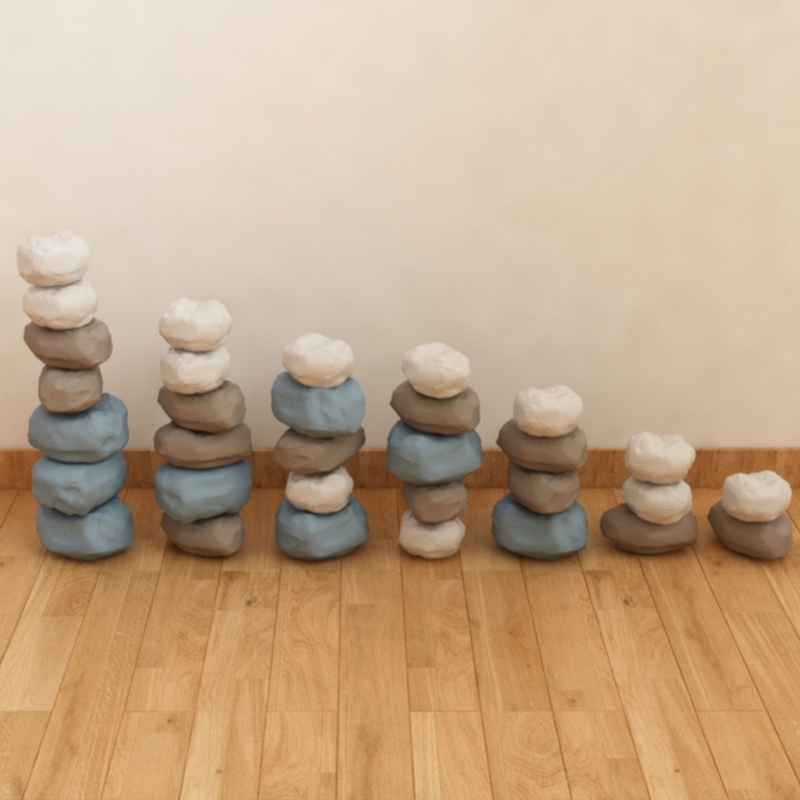 – 40 konstrukcinių akmenų 3 skirtingų dydžių ir spalvų