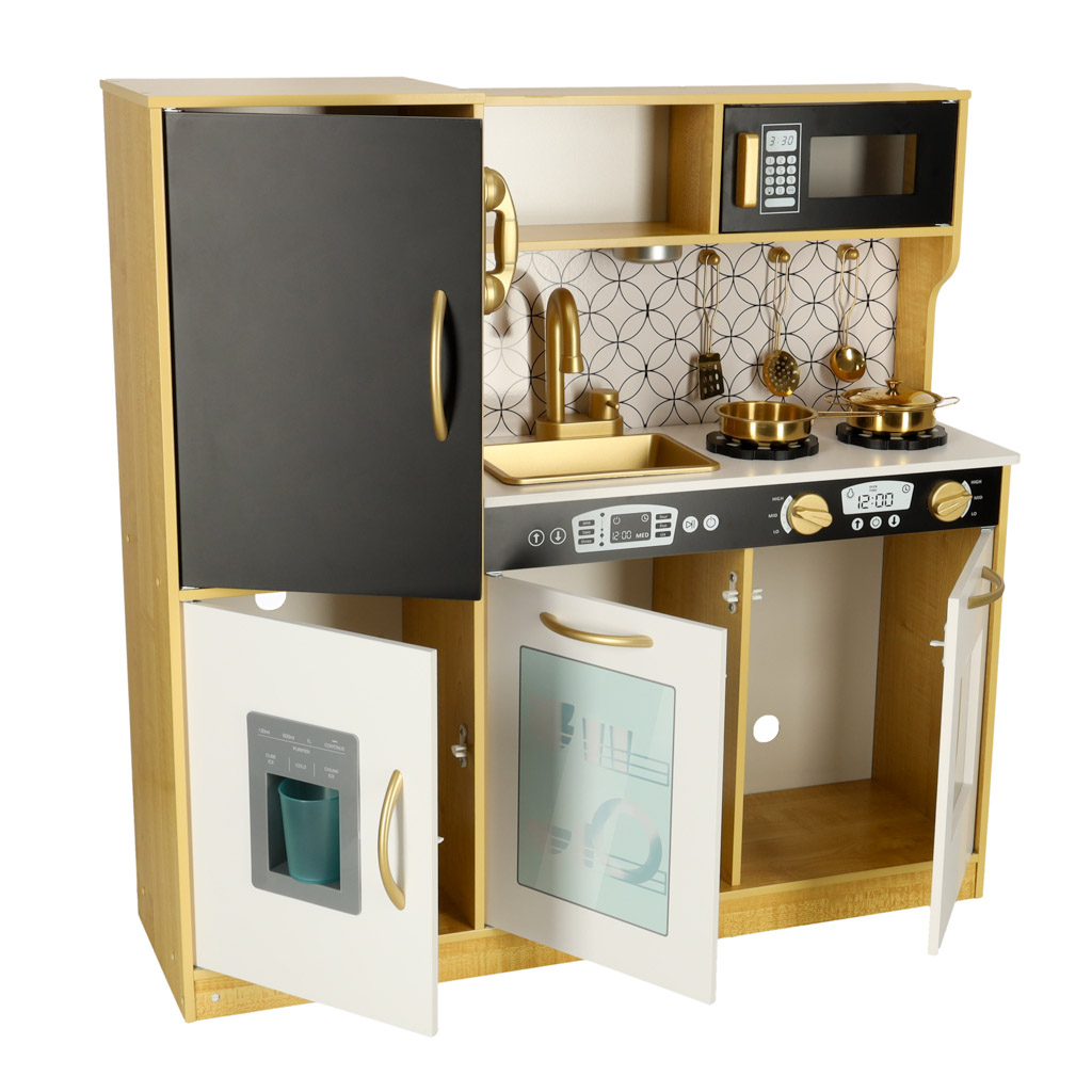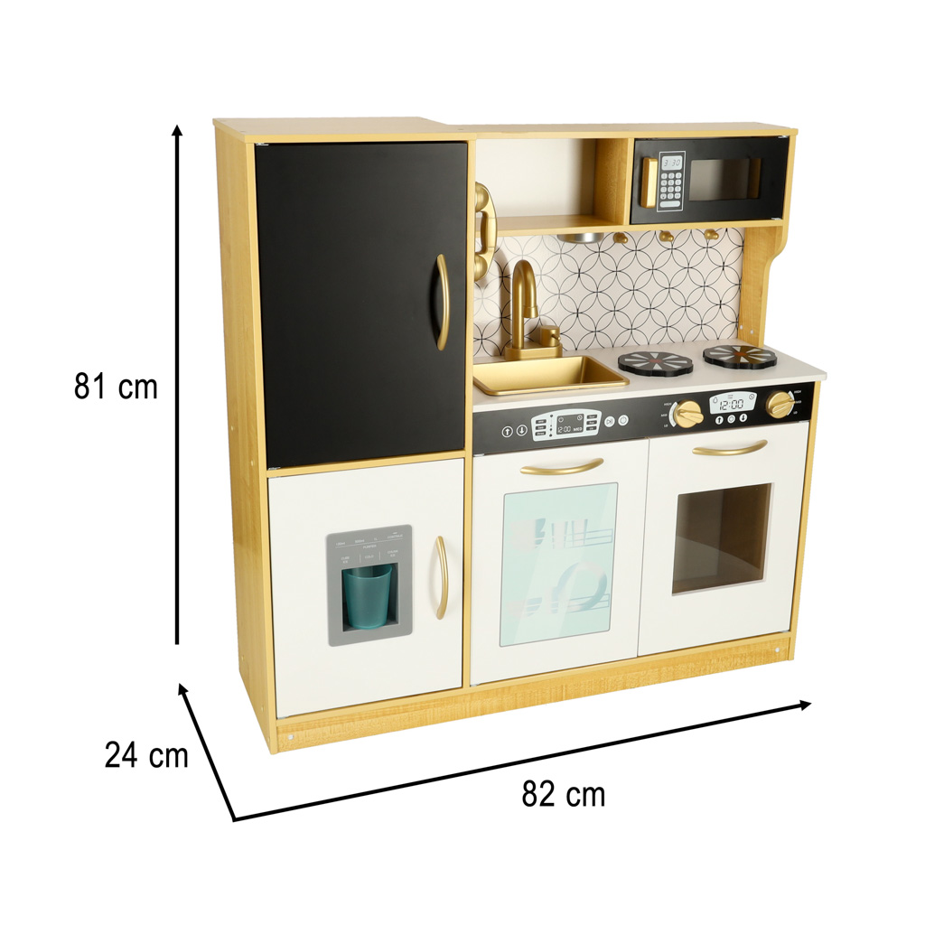Medinė virtuvė vaikams – tai žaislas, skatinantis kūrybiškumą. Joje yra: šaldytuvas su ledukų gaminimo aparatu, kriauklė, mikrobangų krosnelė, indaplovė ir orkaitė, kurios taip pat gali būti naudojamos kaip praktiškos priedų laikymo vietos. Apšvietimas po spintele (maitinamas 3 AAA baterijomis) ir judančios rankenėlės, skleidžiančios užsidegančių degiklių garsą, suteikia žaismingumo ir realizmo. Virtuvėje yra kreidinė lenta receptams ar pirkinių sąrašams užrašyti (kreida pridedama).