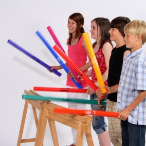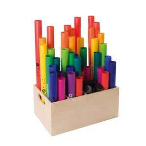 Rinkinį sudaro 39 spalvoti aukštos kokybės plastiko garso vamzdeliai, kurių ilgis svyruoja nuo 30 iki 63 cm, o skersmuo – 4,5 cm. Tonai: c1, d1, e1, f1, g1, a1, h1, c2, c1s1, dis1, fis1, gs1, b1.