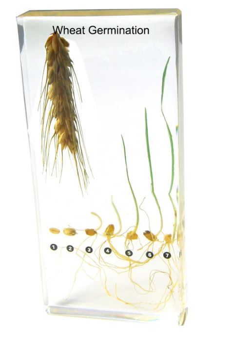 Kviečių dygimo modelis aiškiai vaizduoja grūdinio augalo vystymosi etapus nuo sėklos iki daigo. Modelis pagamintas iš patvaraus ir skaidraus akrilo, leidžiančio besimokančiajam detaliai ir aiškiai stebėti šaknų, daigų ir ūglių vystymąsi.