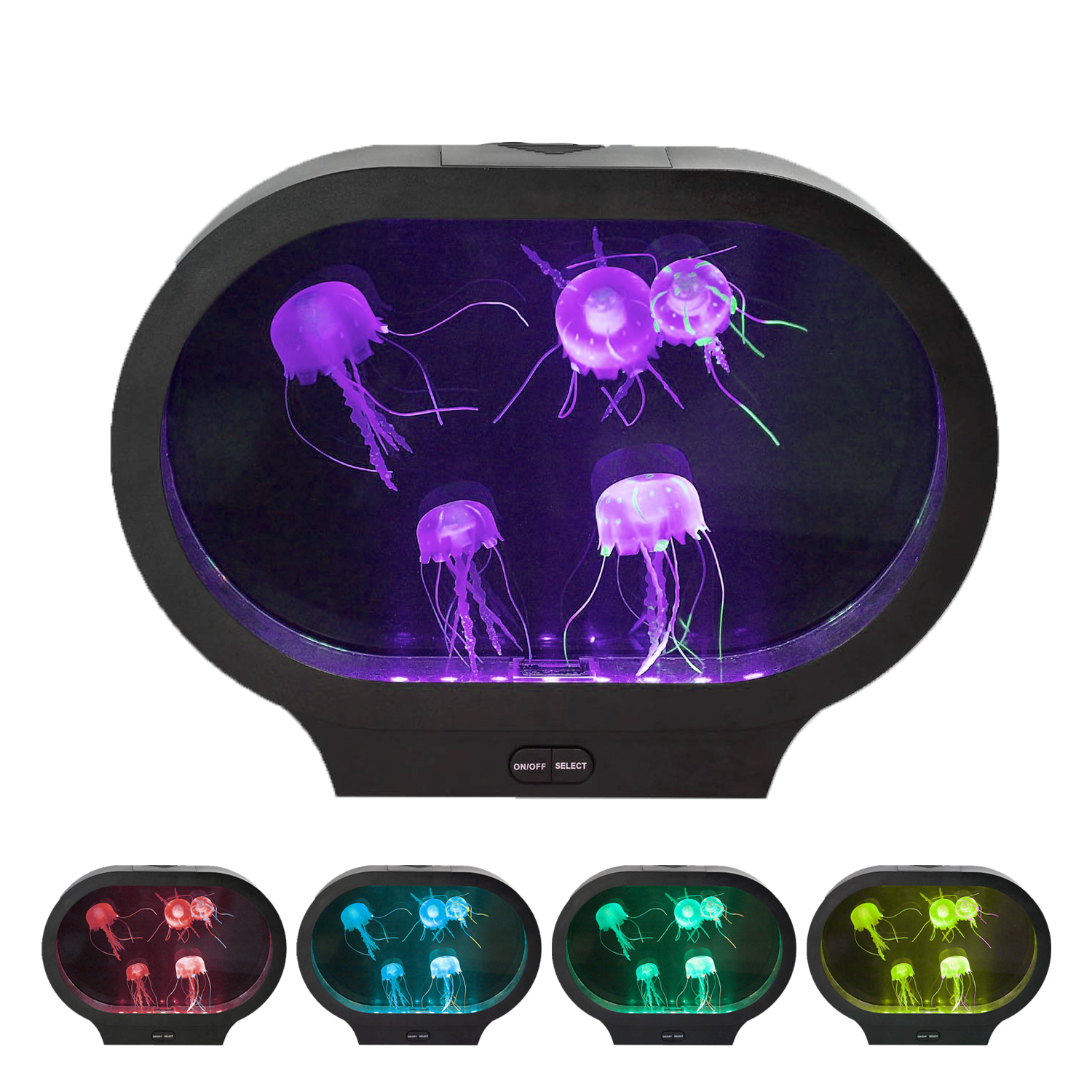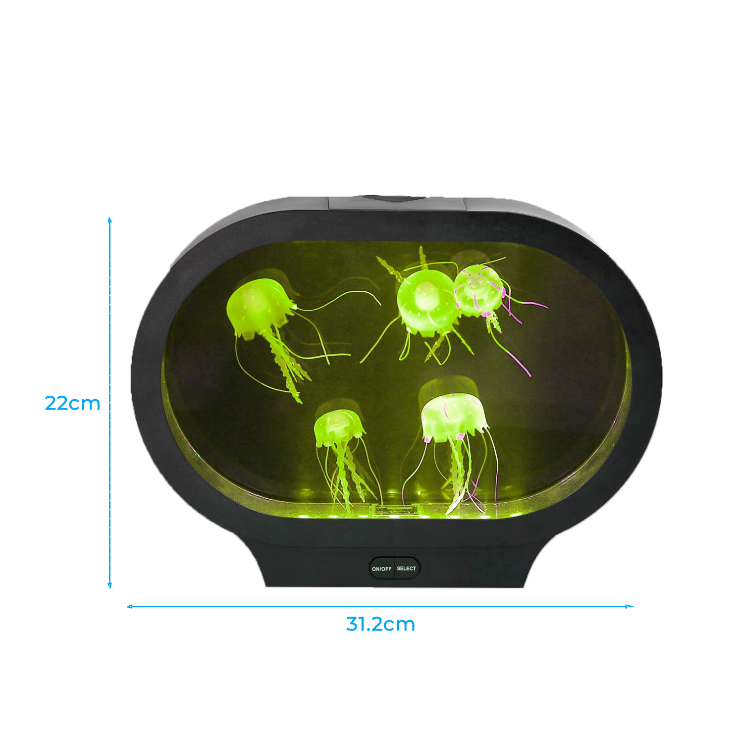 Ovalus medūzų akvariumas yra vizualinis sensorinis įrankis, kuriame medūzos juda lėtai ir natūraliai. Tolygus judėjimas ir šviesa sukuria ramią ir subalansuotą aplinką.