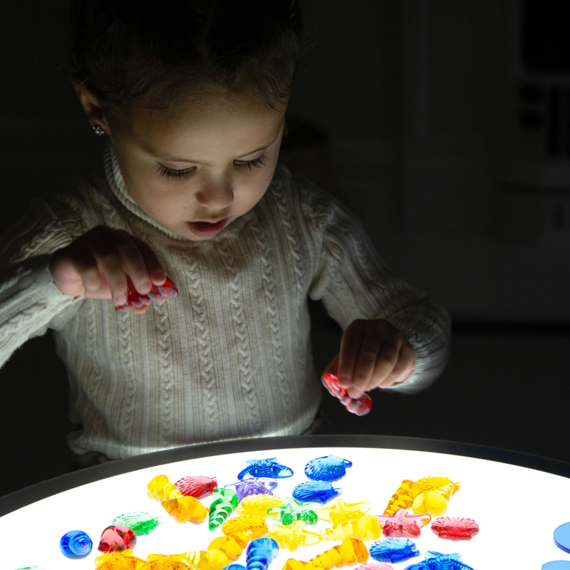 Spalvingos kriauklės skaičiavimui, rūšiavimui, raštų kūrimui ar paprastų matematinių uždavinių sprendimui. Skaidrios spalvos idealiai tinka naudoti ant šviesos skydelio. Rinkinį sudaro 4 skirtingų formų, 6 skirtingų spalvų kriauklytės.  Matmenys: apie 4 cm.
