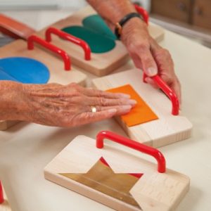 Lavinimas: Akių ir rankų koordinacija, smulkioji motorika, spalvų ir medžiagų atpažinimas, geometrinių figūrų derinimas, atpažinimas ir diferencijavimas, lytėjimo ir regos gebėjimas atskirti, padėčių ir formų atpažinimas ir klasifikavimas viena kitos atžvilgiu