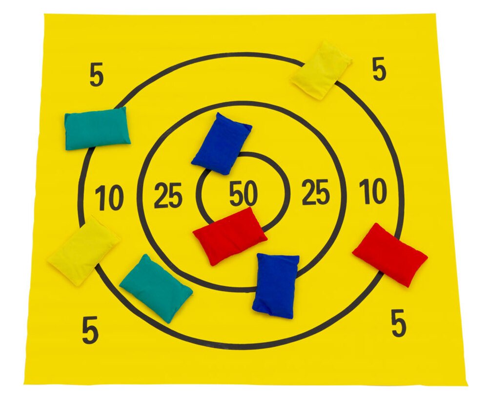 Rinkinyje: 1 taikinys – kilimėlis, 8 pasunkinti maišeliai (4 spalvų)