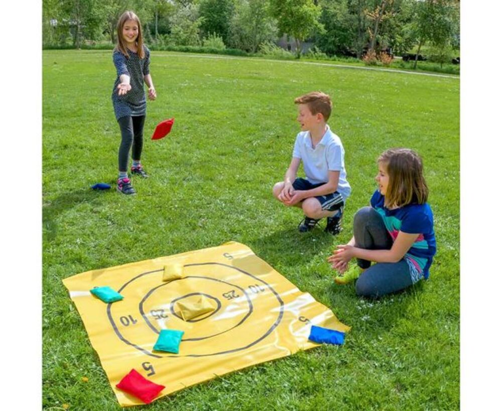 Keli vaikai varžosi tarpusavyje, kas taiklesnis. Visi meta pasunkintus maišelius ant taikinio – kilimėlio. Iškart matoma, kiek taškų surinkta ir kas laimėjo.