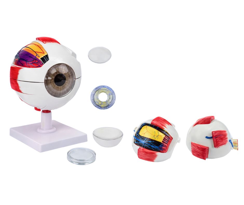 Anatominis akies modelis su 6 kartų didinimu leidžia studentams vizualiai ir praktiškai suprasti akies sandarą ir regėjimo procesą. Modelis pagamintas iš patvaraus plastiko ir leidžia savarankiškai tyrinėti akies vidinę sandarą.