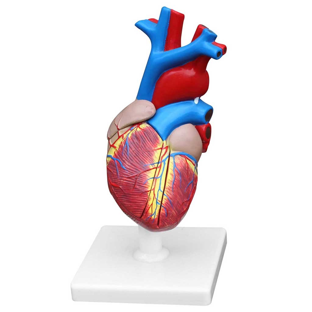 Natūralaus dydžio žmogaus širdies modelis yra padalintas į keturias dalis, leidžiančias detaliai apžiūrėti tiek vidinių, tiek išorinių struktūrų struktūrą ir funkcijas.